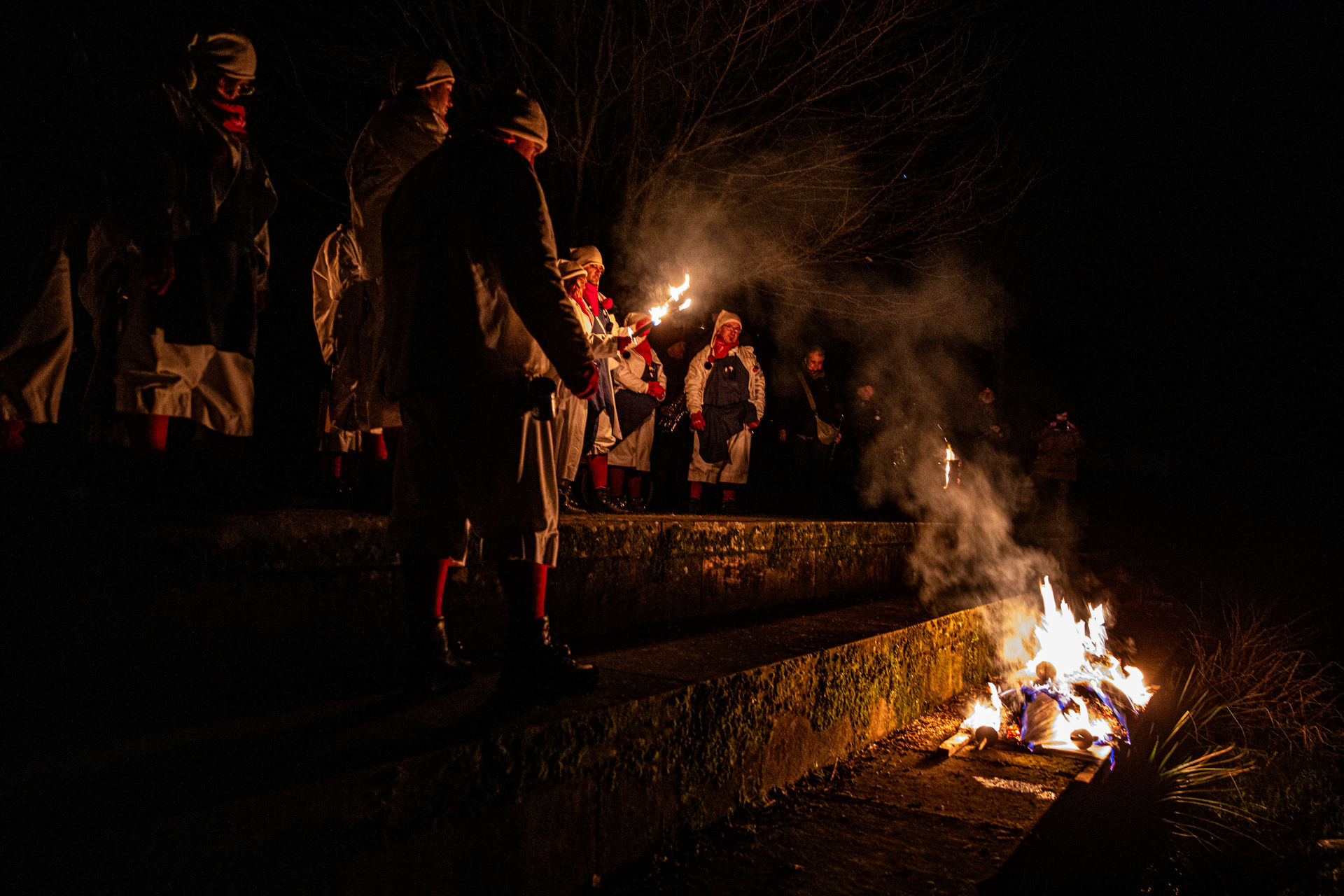 Die Narren sind schon ein seltsames Volk: Nachdem sie erst tagelang gefeiert haben, fangen sie am Fastnachtsdienstag plötzlich auch noch an, eine Strohpuppe aus dem Dorf zu tragen und zu verbrennen. Für Außenstehende mag das vollends verrückt wirken. Tatsächlich ist dieses Ritual aber ein uralter Brauch, der bis nach Griechenland verbreitet ist und mit dem die Fastnacht beendet wird. Die Strohpuppe dient als Sündenbock für die Fastnacht und das ungezügelte Leben – sie wird angebrannt und mit ihr gehen unsere Sünden, die wir in dieser Zeit begannen haben, in Flammen auf. Erst jetzt ist es rum, jetzt ist alles Schall und Rauch. Und was bleibt übrig? Asche. Asche ist das Zeichen für die Vergänglichkeit und wird als Zeichen der Demut und Umkehr benutzt. Denn die Narreteien und Feiern der vergangenen Tage sind vorbei, der Aschermittwoch und die Fastenzeit stehen vor der Tür. Während wir Jockel also am Dienstag Abend mit tränenden Augen am Badplatz standen und trauerten, brannte der Strohjockel langsam vor sich hin. Und am Ende blieb nur Asche.